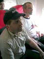 die angespannten Nerven der tapferen Crew: im Shuttlebus zur MD-83