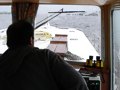 Starker Starkregen! Der Captain verlegt sogar den Steuerstand nach innen - und das will etwas heissen! Durch die wonnigliche Kabinentemperatur von 28°C (verursacht von Seppi, damit wir es auch beim ärgsten Wetter richtig gemütlich haben) sind die Sichtverhältnisse gleich schlecht wie draußen. Die Scheiben sind ständig mehr als beschlagen und auch die Leistung des einzigen Zwerg-Miniatur-Scheibenwischers der Pénichette im Kampf gegen den Starkregen ist nicht wirklich erwähnenswert. Ganz anders die der Heizung, sie verdient ein dickes Plus! Nichtsdestotrotz frisst der Captain Meile um Meile - drei volle Karten-Seiten (Seppis persönlicher Maßstab für unsere Routenplanung: "Wia vü Seitn foa ma heit?"). Wir erreichen Inishcorkish (ein Restaurant-Geheimtipp!) und wollen essen gehen - leider wieder mal "closed" - nur ein Hund empfängt uns freundlich und will anheuern. Ende Mai halten die meisten irischen Restaurantbesitzer wahrscheinlich noch Winterschlaf, wieder nix mit essen gehen! Sehr, sehr schlechte Stimmung beschleicht die Mannschaft, Tristesse macht sich breit an Board und der Captain ist besorgt (erste Gedanken über den körperlichen und seelischen Verfall der Mannschaft plagen ihn...). |